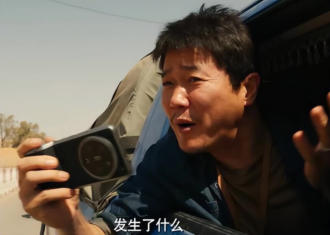 恐怖分子劫车抓人碾压平民时,苗峰迅速蹙眉,意识到严重性,阻拦马笑拍摄。